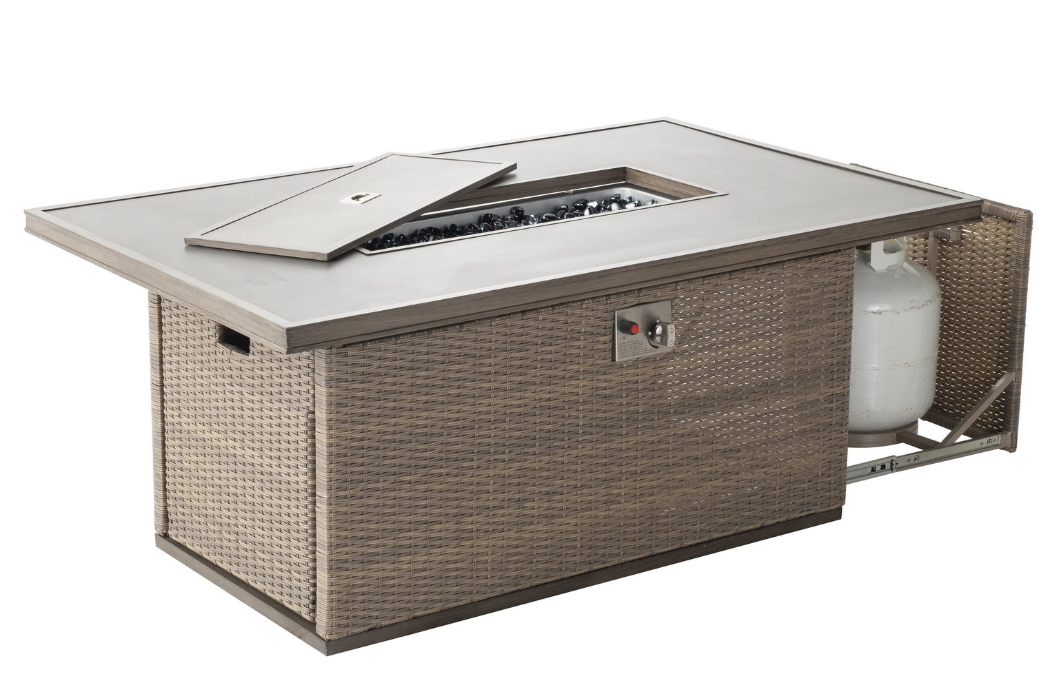 Morris 56" Rectangular Wicker Cast Gas Fire Pit Table w/ GRC Top