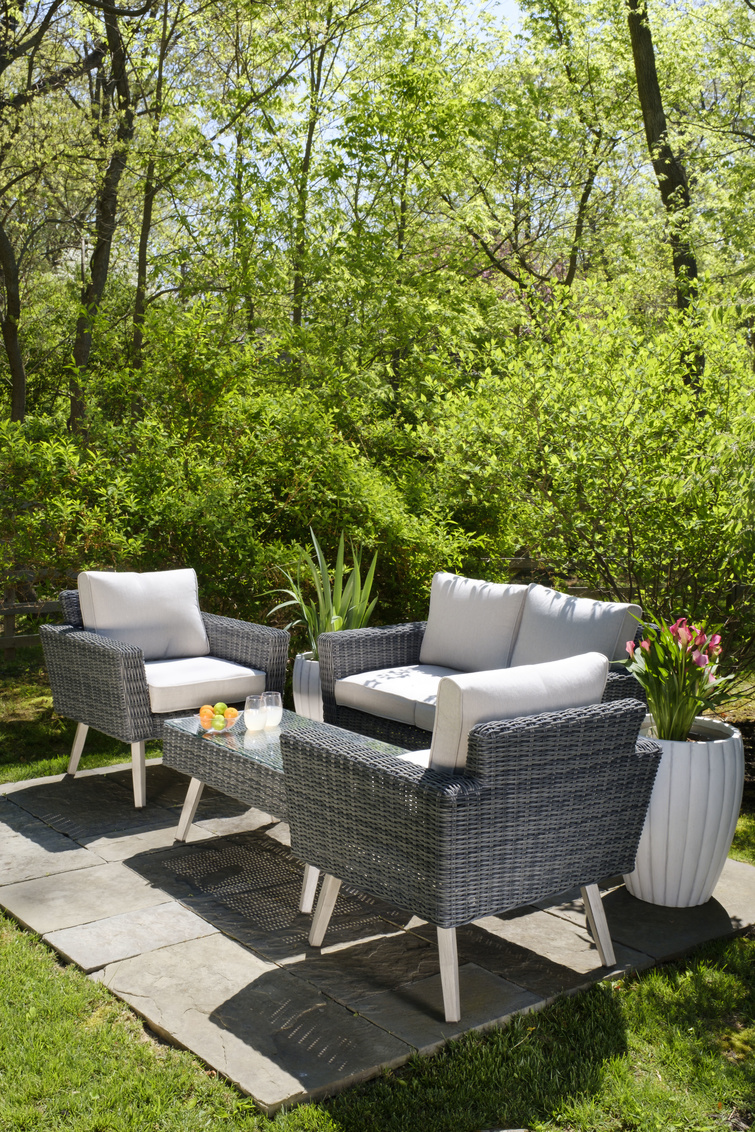 Valentina Wicker Alum Seating Grp w/Sunbelieveable Dove cush