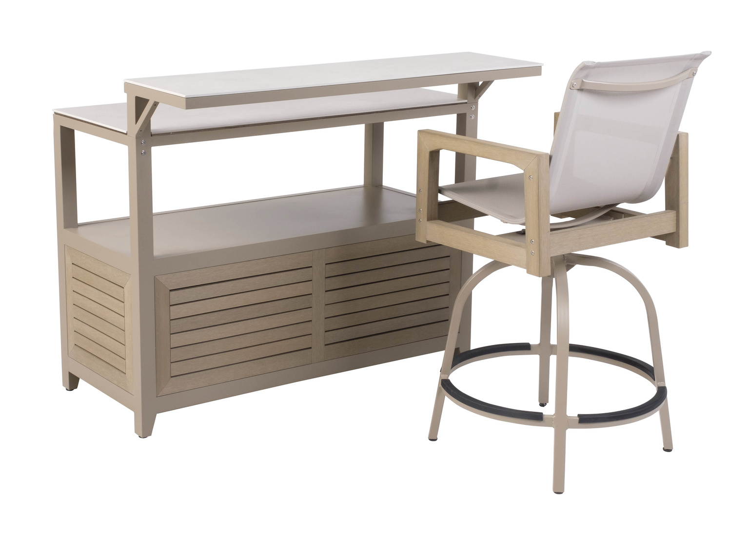 San Simeon EverTeak™ Phifer Sling Swivel Bar Chair -Mineral + Earth