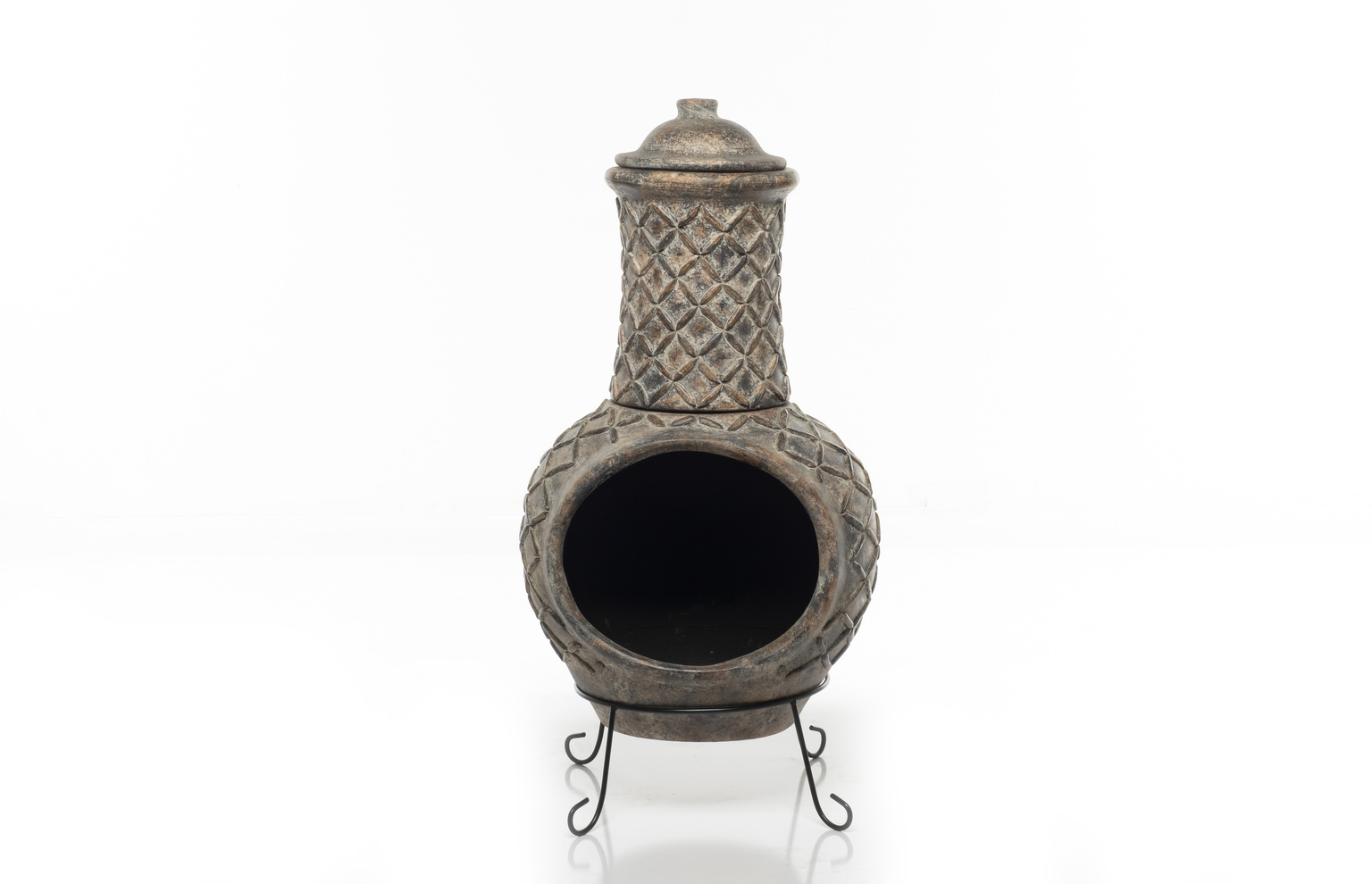 Earthenware 2 pc Large Lattice Chiminea w/ lid + stand