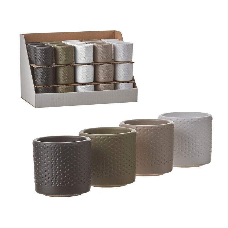 - Ezra 2.75” Rnd Dimple Plntr Assrtmnt 1 Shape | 4 Colors | 42 total pcs