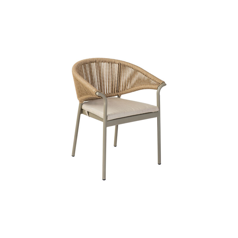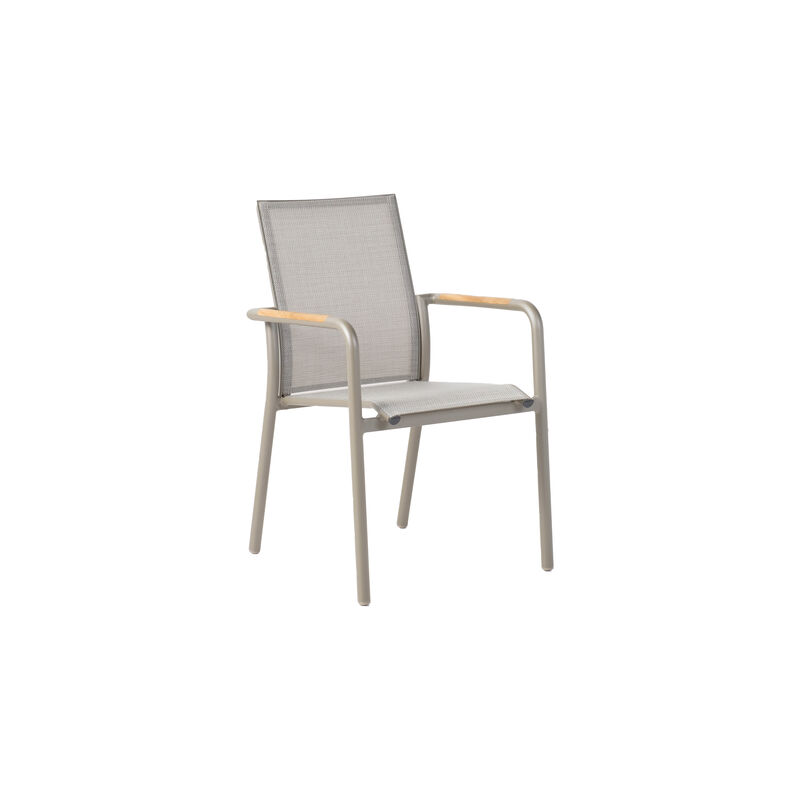 - Lexus Stackable Sling Dining Arm Chair - Champagne + Composite EcoWood Armrest