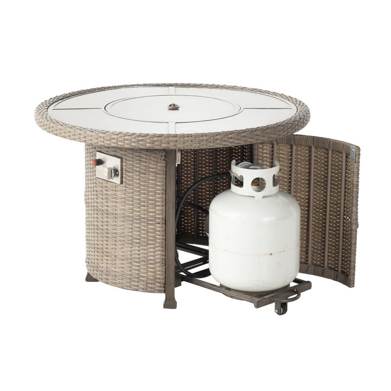 - Kennett 38" Round Wicker Cast Gas Fire Pit Table