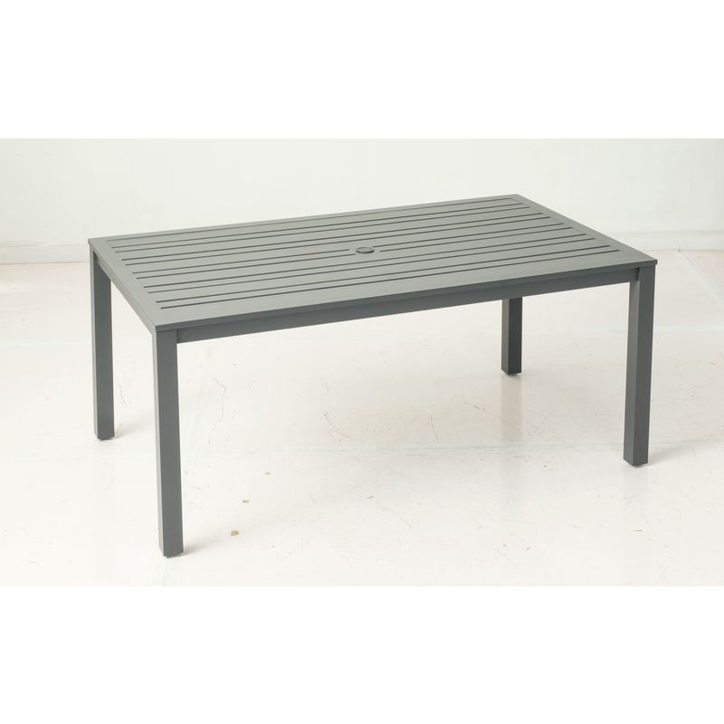 - Sarah 72" Rectangular Aluminum Dining Table w/ umbrella hole - Hearth